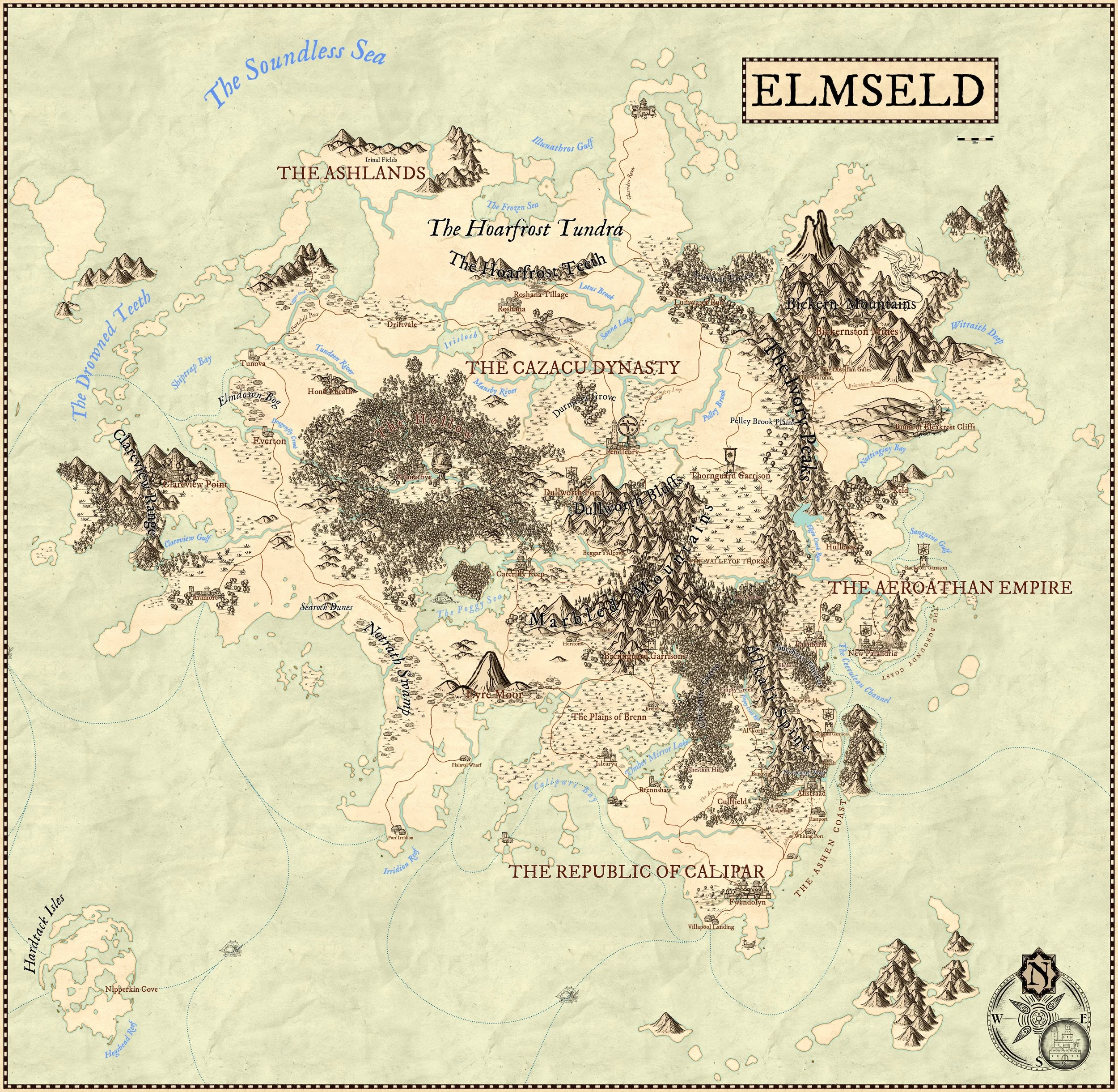 Elmseld is believed to be the oldest continent of Amanthia; historians have also placed much of the events within the Dereliction to have occurred on the continent.